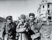 Вручение ордена "Победа" СталинуКалинин вручает Маршалу Сталину высший военный орден Советского Союза "Победа", - за исключительные заслуги в организации проведения наступательных операций Красной армии приведших к крупнейшему поражению германской армии и к коренному изменению положения на фронте борьбы с немецко-фашистскими захватчиками в пользу Красной армии. Одновременно Маршалу Советского Союза Сталину за выслугу лет в Красной армии вручен орден "Красного знамени".