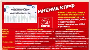 - Ни по уровню представительства в регионах, ни по доле голосов КПРФ не уступила другим партиям кроме «Единой России». Более того, именно две левые партии – КПРФ и «Справедливая Россия – За правду» – занимают второе и третье место по реальной поддержке, по количеству завоеванных мандатов на ЕДГ-2025. И только после них идут ЛДПР и «Новые люди».