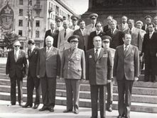 Всесоюзный парад физкультурников. (1945) Всесоюзный парад физкультурников. (1945) Парад физкультурников республик СССР на Красной площади. И. В. Сталин, А. А. Жданов, А. А. Андреев, М. И. Калинин, В. М. Молотов, Л. П. Берия и другие на трибуне Мавзолея. Д. Эйзенхауэр, Ф. Гааль, Осубка-Моравский - на гостевой трибуне.
