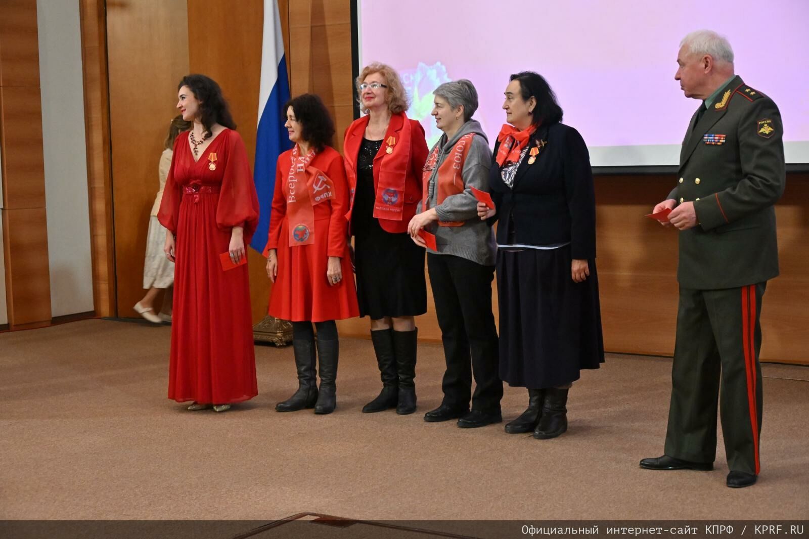 Принимавшие участие в мероприятии депутаты Госдумы во главе с Первым заместителем Председателя ЦК КПРФ Юрием Афониным. Депутаты фракции КПРФ отмечали роль активисток ВЖС в поддержке бойцов СВО и населения прифронтовых территорий, страдающих недугами детей, многодетных семей, агитационно-пропагандистской работе КПРФ и многих-многих других направлений работы партии.